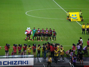 試合の内容的には全然良くない。アラーノは前節に比べて存在感なかった(惜しいシュートは2本あったけど)。カズゥもいまいち調子良くない。相手が引いてて前にスペースあるときはすぐにパスしないでドリブルで前に行くとか、勇気を持って縦パス入れるとかしてほしかった。そんな感じで最後はほんとに相手に引かれて5バックになっちゃって、ああなったらもうセットプレーしかないってとこで決めてくれたので、内容は悪くても私は相当満足ですw内容云々を語るのはクロウトの方々に任せて、シロウトの私は浮かれっぱなしで水曜日も大きな期待をしておるよ。