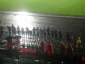 昨日は雨の中厚別にお集まりの皆様、おつかれさまでございました。最初は曇り空で何とかこのまま持ってくれと思ったが、後半開始と同時に降り出して最後はもうどしゃぶりで。ただ風がなかったので、ライトの光に照らされながらゆっくりと落ちてくるたくさんの雨粒がとてもきれいでした。しかしあんなに降られると、おちおちビールも飲めん。
