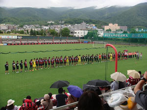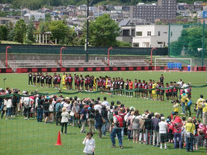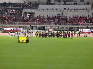 初ナマの人といえばステファノも初めて見たんだけど、がんばっているのはわかるのだが、イマイチであった…。何かこう、武器になる物がほしいよね。クロスの精度がいいとか、FKいいコース蹴るとか。そんで結局一番目に留まったのは、創成高校から練習生として来ていた7番くんだったというw運動量多くてプレー安定してて良かったわー。先制点も7番くんからのいいパスが起点だし。小野と7番くんが後半選手交代で一緒にピッチの外に出て、しばらく2人でしゃべってたな。今日学校で自慢してんのかな。「オレ昨日小野と一緒に試合出たんだよね」とかっつってw