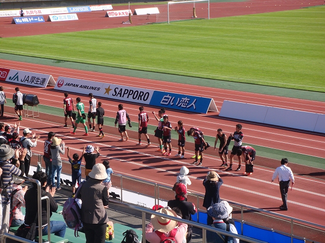 帰りのJR新札幌駅、向かいのホームに今節の主審だった扇谷さんとサッカー協会(?)の誰かが。そしてなぜか2人ともこっちに向かって会釈してきたw赤黒のタオマフしててサポだってわかったからかな。ちょっと好感度アップw