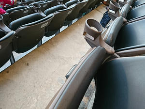前々からキンチョウに行くって決めてたのにチケット買うのにのんびりしてたら、買おうと思っていたメインのアウェイ側自由席が売り切れてしまいまして、大枚はたいて指定席を買ってしまいました。高い席だけあって椅子はベンチ型じゃなくフカフカ椅子だし、カップホルダーも付いてて快適だったよ。この日は尋常じゃなく暑くて地面にビール置いたらすぐぬるくなるので、このカップホルダーには救われました。