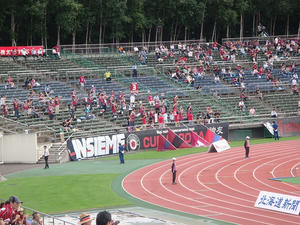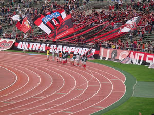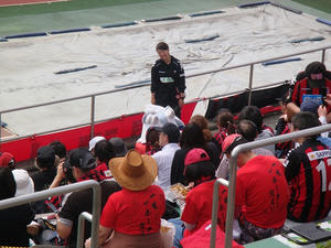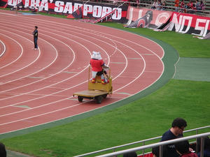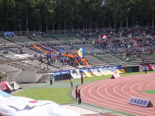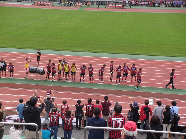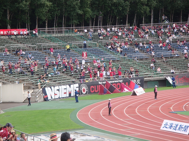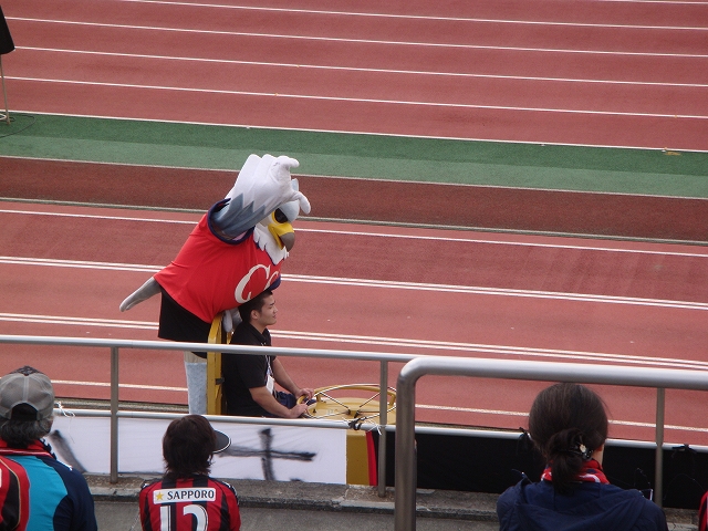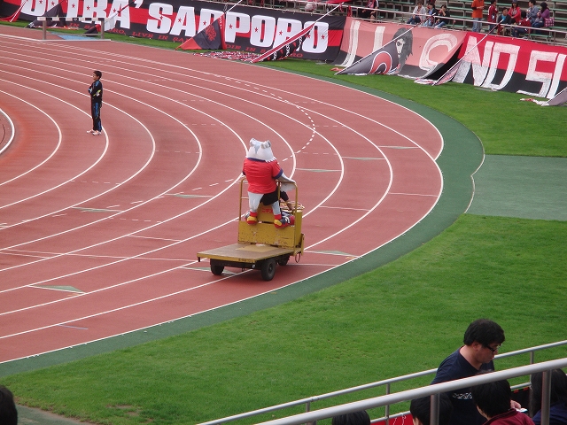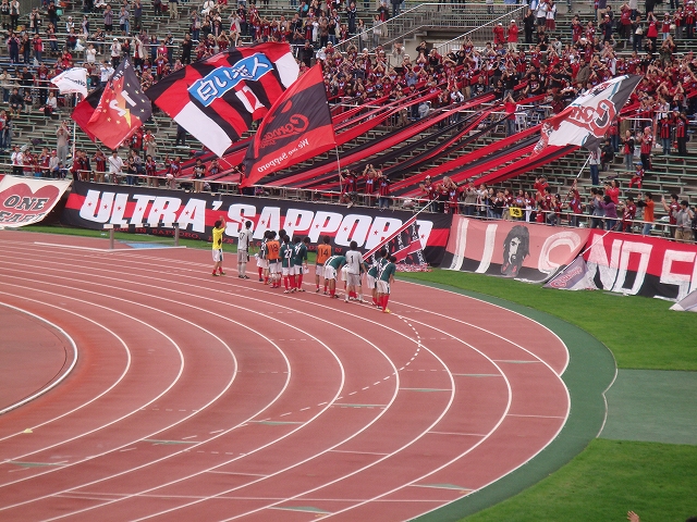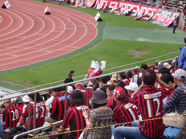 試合前にウロウロしてたら、タイのテレビ局に取材受けたw一瞬とまどったけど、「タイでしか流れませんから」という一言でインタブを受けることに。「今日の長崎戦はどうなると思いますか」とか「今まで行ったアウェーで一番遠いところはどこですか」とか聞かれたよ。まぁ質問にはほとんどうちの人がうまく答えてくれて、私は横でウンウンとうなずいてただけだけどwあと、「サポーターの歌で一番好きなのを歌ってください」と言われたので、「おーれたちのまちのほこり さあゆけよさっぽろ」って熱唱しときましたwそんで最後に、番組のタイトルコールをしてと言われたので、腕振り上げて「Here we GO!!」って言ったwあーいろいろと恥ずかしいwwwどんな番組なんだろ。