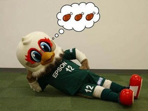 いやいやいや。アルプちゃんもかわいかったけどさぁ、やっぱここは山雅のマスコット、ガンズくんでしょ。ガンズくん見たかったよ。参考画像ガンズくん↓ …とり肉。ともぐいやん。