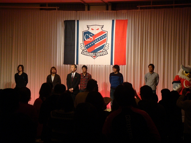終わってまた一段落。選手は相変わらずHFCの人に先導されて各テーブルをウロウロしてる。うちらはソレが来るたびにおもむろに目をそらし、写真を撮ったりサインもらってるサポを生暖かく見守るだけです。しかし三上くんが来た時だけはタイミングを外せず、うちの人が「がががんばってください」とか言いながら握手してたwのちにこれが伏線となるとは。