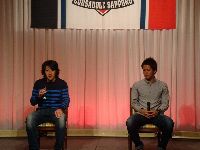 第二弾のトークショーはその三上くんとキラキラ横野くん。まじでイケメンすぎですわ。そして彼の話す言葉も前よりすっかり成長して、ちゃんとして話せるようになったと思う。札幌を離れてより一層札幌への愛着が増したようなことを言っていた。このへんアウェーサポにも通じるものがあるのだろうか。