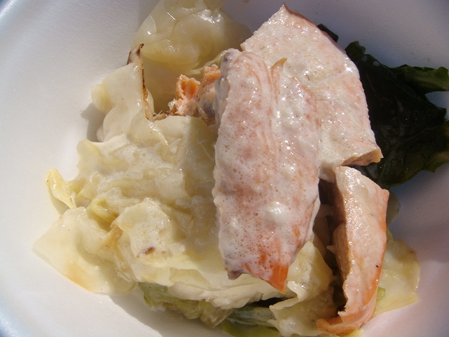 秋鮭のフライ買おうとして目の前で売り切れたのが運の尽きだったのかな…。フライ食べたかったぁぁぁ!あと一人で「フライ終わりでーす!」って紙をべりべりと剥がされた…ショック。バーニャカウダの鮭がおいしかっただけに、コレをフライで食べたかったわ。