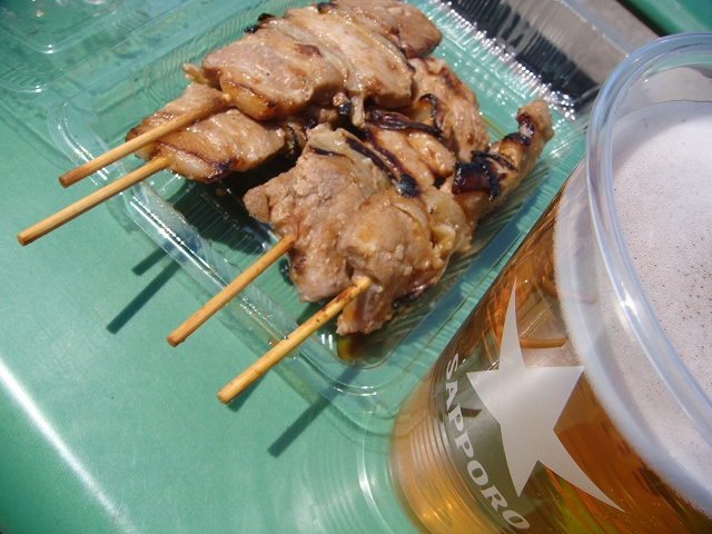 食べた後、場所をアウェー側に移して室蘭やきとりを食べる。こちらはちょっと冷めてしまってたのでビミョウ…。