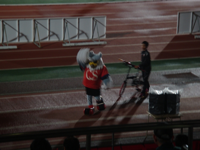 バックスタンドからは裏しか見えなかったので、「おおー今日は電光掲示板か!さすがBS中継だな」と思っていたが、表から見たらコレ、電光じゃないよね…w中継の時には看板外したのか??家に帰ってから録画しておいたBSを見直す気分にもなれずにわからずじまいなんだけど。せっかく解説も早野さんだから、見るの楽しみにしてたのに…。