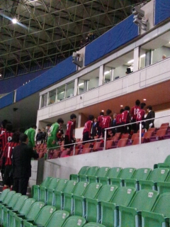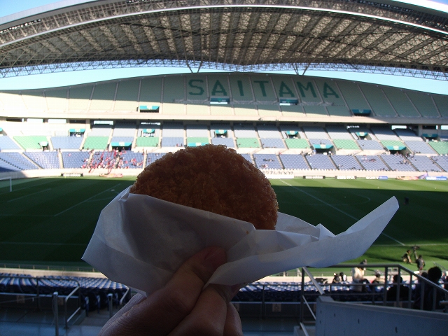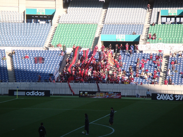 寒い寒いと言いつつも中に入ってビールを買って飲むwあとハムカツとか。埼玉スタジアムに来たのは去年の代表のアルゼンチン戦に引き続き2回目です。リーグ戦では来たことがない。ま、来る機会もなかったからねw来年いよいよ超アウェーでも経験してみるべきか…。