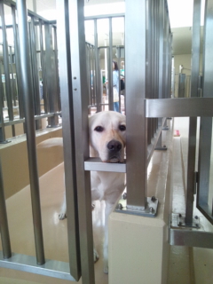 ラブ夫を触りまくれるのはPR犬だけで(よくドームでの試合にやってくる、あのやる気のない犬系ねw)、このような犬舎にいるラブ夫たちに触れるのは禁止されています。でもみんな人好きだから、ヒンヒン言って「オレを触れ」って訴えてくるんだよね。めんこいwww