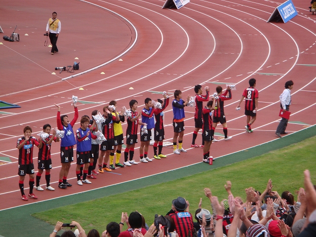 何かまだ浮かれてて書きたいことたくさんあるんだけどまとまらないーw次は北九州戦で、北九州もホームで強いから怖い存在だけど(土曜日のvs徳島戦もいい試合だった)、今のウチはホントに目の前の試合に全力でぶつかってる感じするから、この勢いを絶やさずに何とかがんばってほしいですよ。