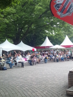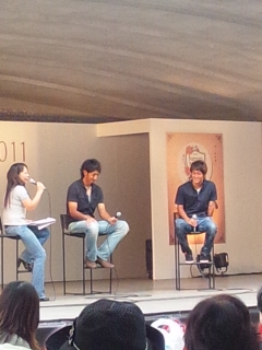 さっき会社抜けてちょっと大通公園に行ってきたw6丁目でやってたトークショー見てきたよ。出演者は横野くんとヒッキー。司会は潮音さん。
