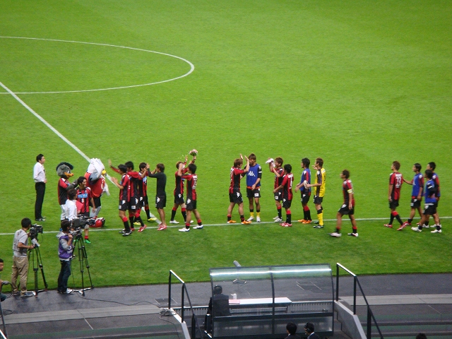 何より感心したというか成長したなぁと思うのは、ジオゴがいる時のサッカーを全くしないで勝てたってことと、北九州の試合の入り方がすばらしかったのをよくしのいで、効率良く得点して相手にペースを渡さなかったことかなぁ。特にウッチーの2点目はすばらしかった。スナの絶妙のパスと、ウッチーの裏への飛び出しがパチンとはまってウッチーは余裕ありありで、ゴールにパスするだけだったもんね。1点目のウッチーも何回見ても笑えるけどw偶然に自分の足下にボールが転がってきて、「あれっ?エイ!!」って感じでシュートしてたw