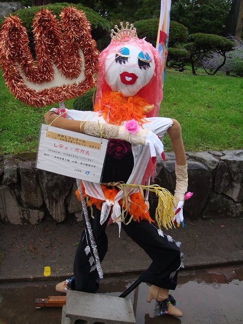 ここでこれ以上食べると他の物が食べられなくなるので、常磐公園を後にして買物公園へ移動。全然関係ないけど、入口に並んでいたかかしの一つがおもしろかったので写真を撮る(かかしコンクールというのをやっていた)。少し見えづらいけど、「レディ・ガガ氏」というプレートがぶらさがっていた……ハッ!いま思いついたけど、ガガ氏とかかしをかけてたのかwww早野さん旭川まで出張お疲れっすwww