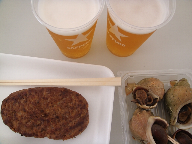 最後に、つぶ煮と「宗谷岬牧場のハンバーグ」を食べて締める。ハンバーグはあっさりしていて、かなりおなかいっぱいだったけどすごくおいしかったです。そういえば、このイベントでのビールはサッポロビール様オンリーでしたよ。クラシックや黒ラベルなどの他に、エビススタウトクリーミートップもあった。すばらしい!