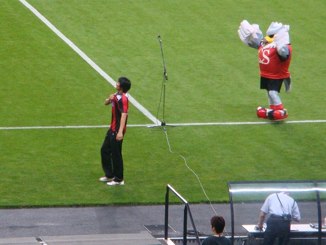 あーもうせっかく平ちゃんが来てくれたのにこんな試合になっちゃって・・・。試合後のアフゲーコンサver.だって、勝ってたらもっとお客さん残ってワイワイしながらハイライト見られたかもしんないのにー。ほんっとにいろんなところで勝負弱いなウチはっ!!(お天気もすごく良かったのにそういう日に限ってテラスでの屋台ナシっていうのも勝負弱い所だと思う)