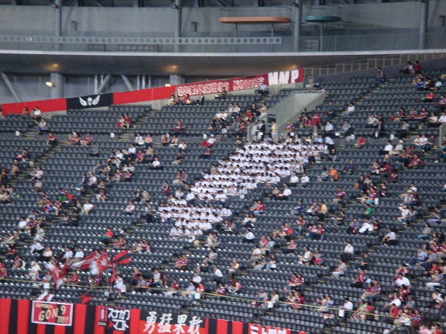 震災で延期になっていたので、「第2節」となった北九州戦です。久しぶりの平日開催、地下鉄に乗って何食わぬ顔で持ってる会社用の黒いカバンに、赤黒のキーホルダーが見え隠れしてるオッサン、エスタのビニール袋ぶらさげてニヤニヤしてドームに向かうオッサンなどなど、見てるこっちもニヤニヤしてしまいますw私らも定時で仕事を終えて真っ先に向かうは、屋外テラス!
