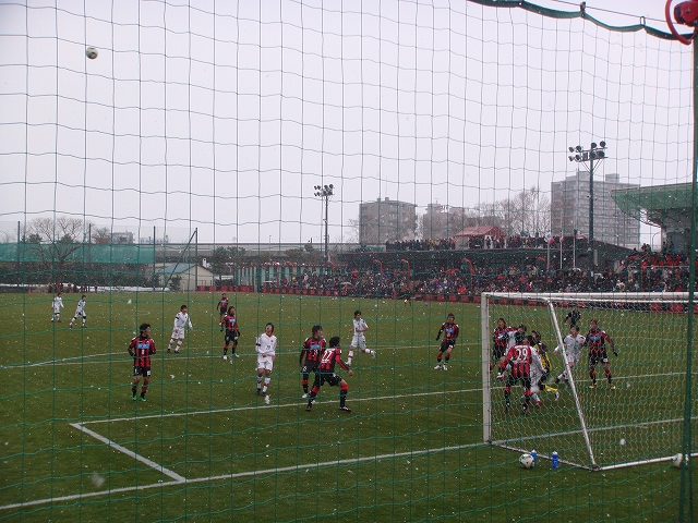 寒い中、宮の沢へチャリティマッチを見に行ってきました。どんなにあったかい格好をしていてもじっと座っていたら足元からどんどん冷えていく寒さだった・・・。着くのが少し遅れたからゴール裏しか空いてるところなかったんで、アラレがダイレクトで顔に当たって痛いわ寒いわ荷物に雪積もるわだしね。いやーもうね、春先でもこんなに寒い日があるかと思うとね。ホント秋春制万歳ですわwww